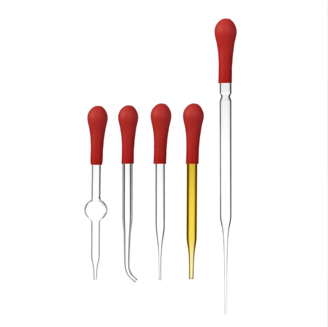 3, Với đầu bóng đèn cao su, ống nhỏ giọt đầu cao su bao gồm một nắp cao su và một ống thủy tinh. Có thẳng và uốn cong, thẳng với bóng đệm và uốn cong cũng với bóng đệm và các dạng khác.